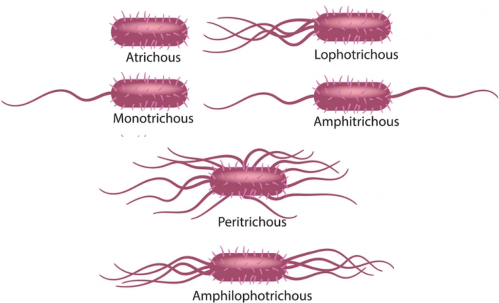 Keberadaan dan pola distribusi flagela merupakan karakteristik morfologis penting yang digunakan untuk mengidentifikasi spesies bakteri. Berdasarkan jumlah dan letak flagelanya, bakteri dikategorikan ke dalam lima tipe utama: