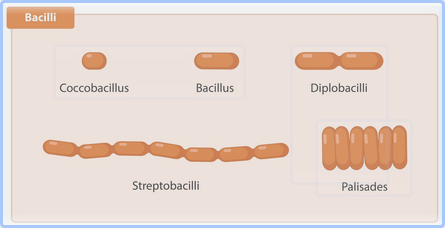 Kelompok basil memiliki morfologi menyerupai batang atau silinder. Sama halnya dengan kokus, bakteri basil juga memiliki variasi susunan, meskipun tidak seberagam kokus karena basil hanya membelah pada sumbu pendeknya.