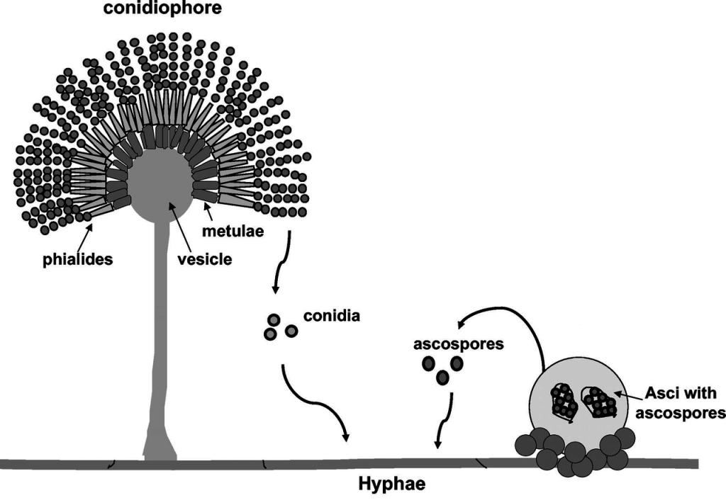 Metode ini menyerupai reproduksi jamur dan khas pada bakteri berfilamen (Actinomycetes). Spora reproduktif (konidia) terbentuk di ujung rantai filamen. Contoh Spesies : Streptomyces griseus (penghasil antibiotik), Micromonospora, dan Nocardia asteroides.