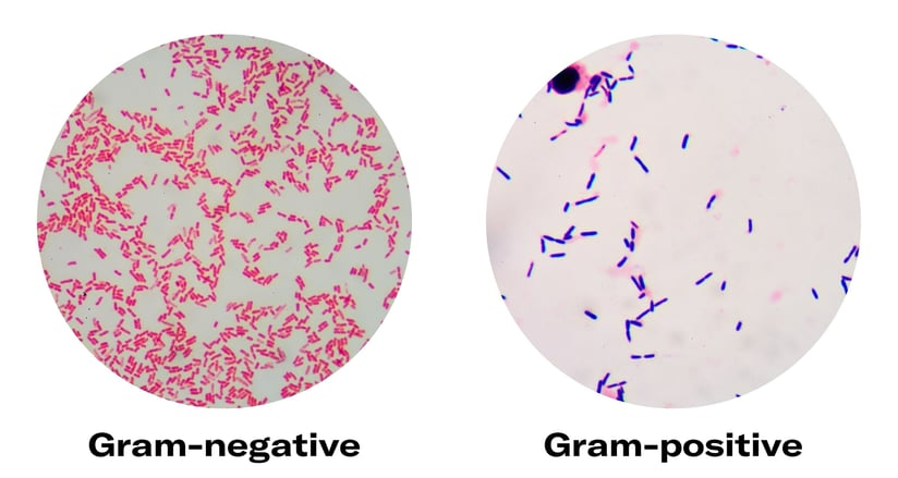 Sebaliknya, bakteri Gram-negatif memiliki karakteristik dinding sel dengan lapisan peptidoglikan yang tipis. Karena strukturnya yang tipis dan adanya membran luar yang kaya lipid, dinding sel ini tidak mampu menahan molekul kristal violet saat proses dekolorisasi (pelunturan warna). Akibatnya, bakteri ini akan melepaskan warna ungu dan kemudian menyerap zat pewarna tandingan (counterstain) berupa Safranin.