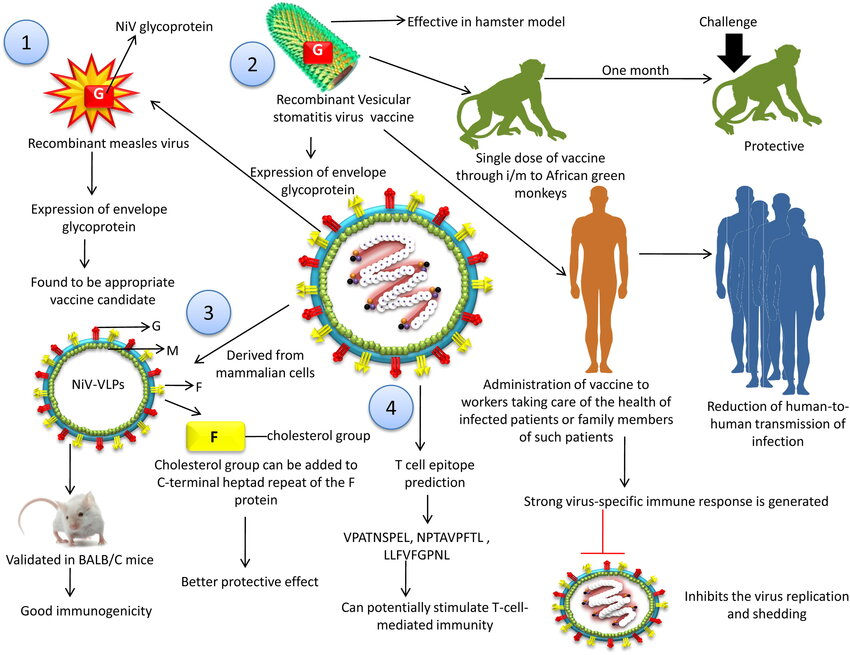 1. Vaksin virus campak rekombinan (rMV) yang mengekspresikan glikoprotein selubung NiV telah ditemukan sebagai kandidat vaksin yang efektif.