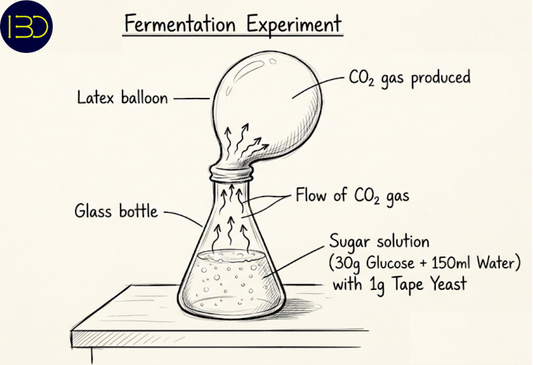Pada percobaan fermentasi, yeast memetabolisme glukosa melalui glikolisis yang diikuti fermentasi alkohol, menghasilkan etanol dan CO₂. Gas CO₂ yang dihasilkan terakumulasi dalam sistem tertutup dan dapat diamati melalui pengembangan balon, sehingga menjadi indikator langsung aktivitas respirasi anaerob [2].